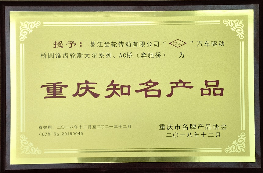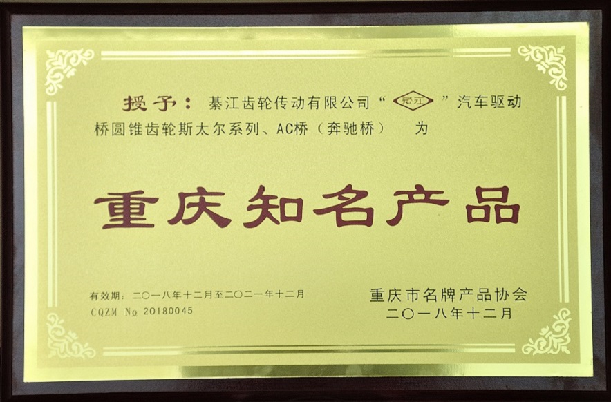 公司成立以来,荣获了“国家零部件出口基地”、“中国100家最佳汽车零部件供应商”、“中国机械500强”、“中国齿轮行业优秀企业”、“重庆市重合同守信用单位”、“重庆市文明单位”、“重庆工业企业50强”、“重庆制造企业100强”等称号。
