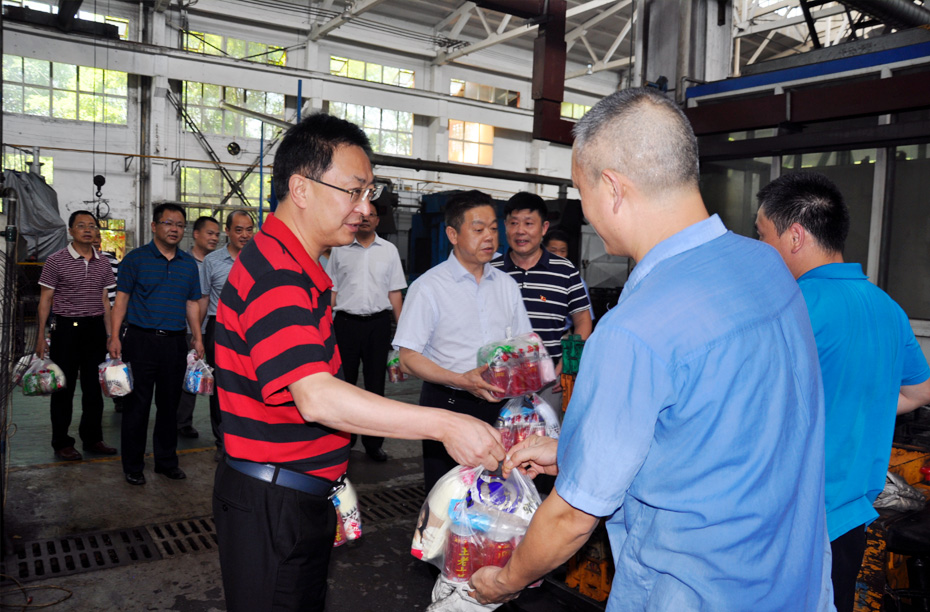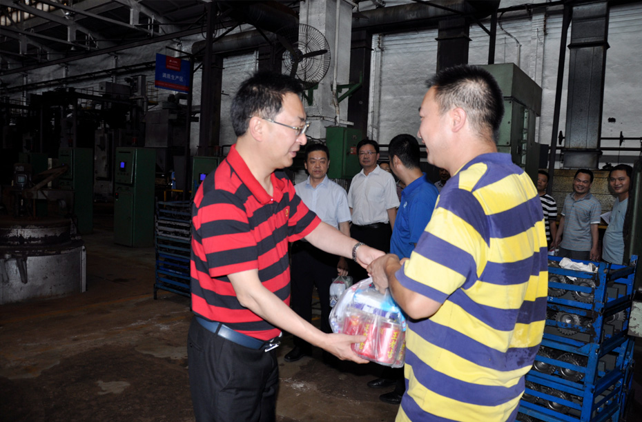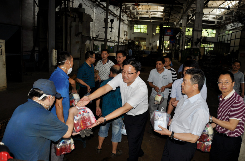 机电集团公司副总经理刘永刚,公司领导在高温天气到生产现场慰问一线员工
