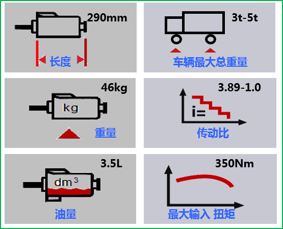 •双动力输入:一根输入轴控制1、3挡 一根输入轴控制2、4挡,节省了整车布置空间,降低了系统重量,节约成 本。